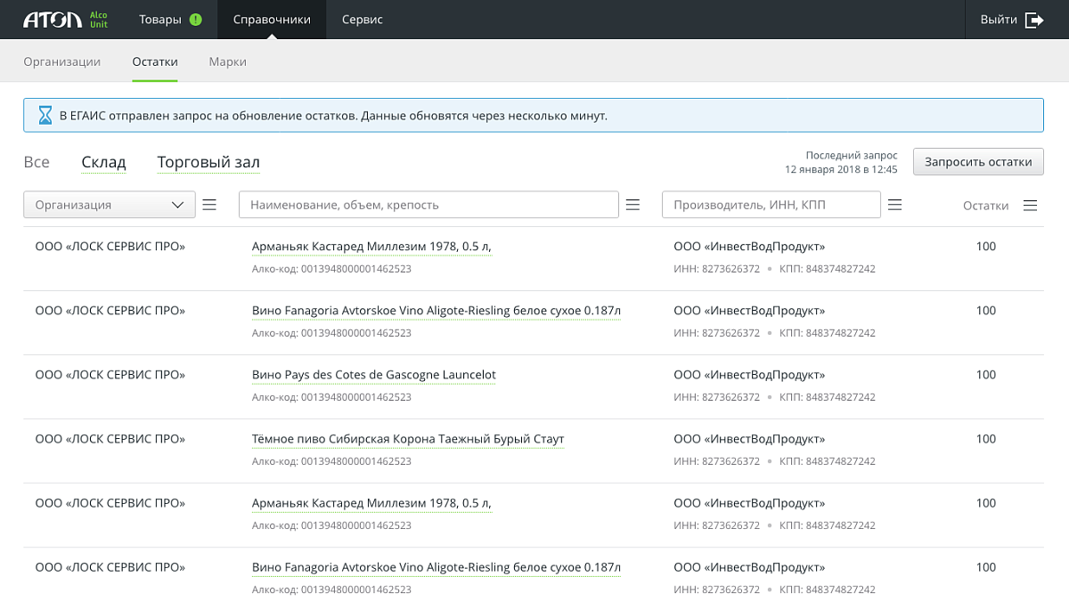 - Рабочее место администратора, где можно редактировать статусы акцизных марок.